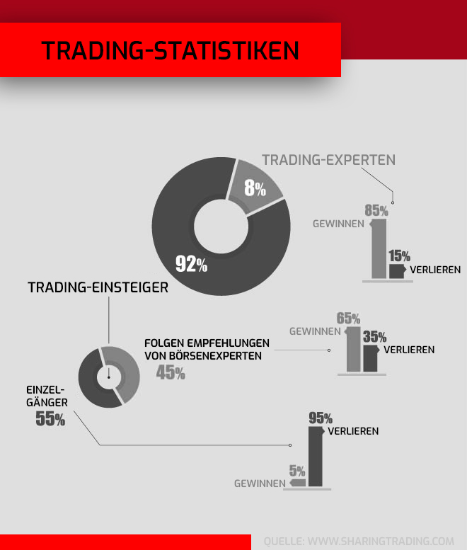 - 95% der Trading-Einsteiger, die auf eigene Faust loslegen, verlieren ihr Geld.